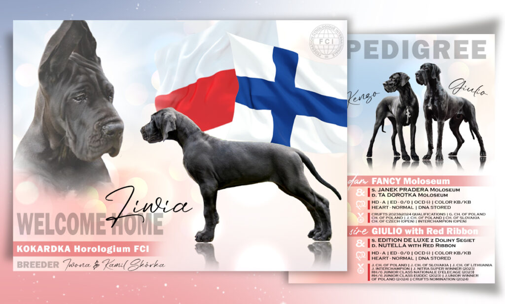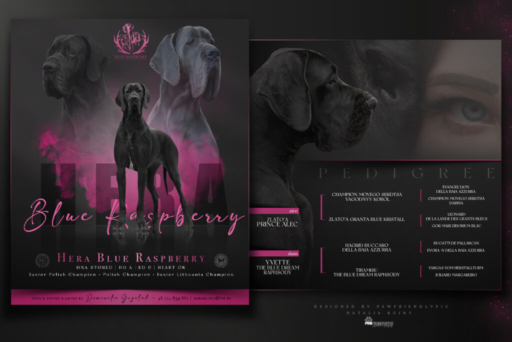 • wyróżniającą się grafikę, która pomoże Ci promować wizerunek Twojego psa/hodowli/miotu